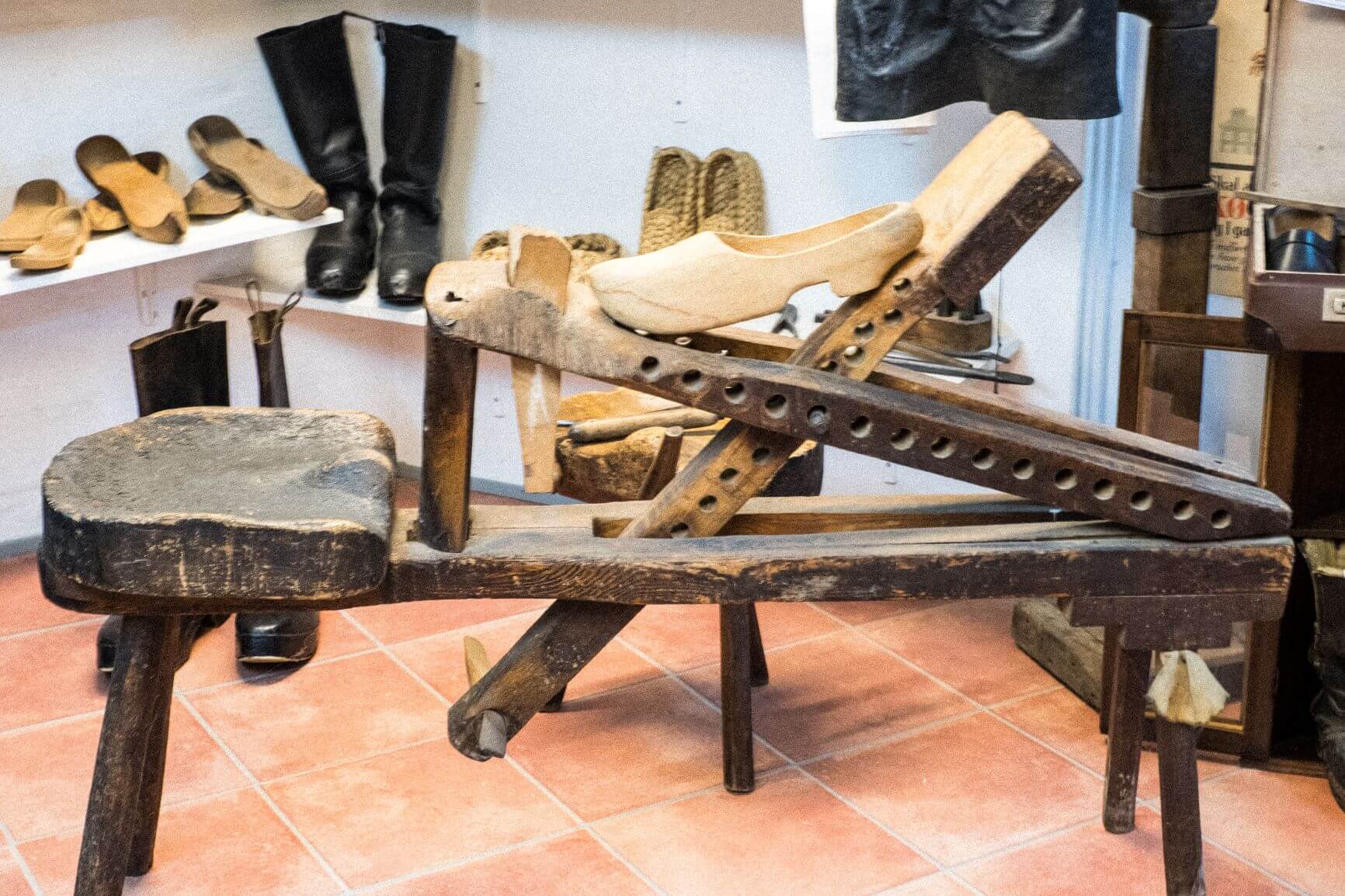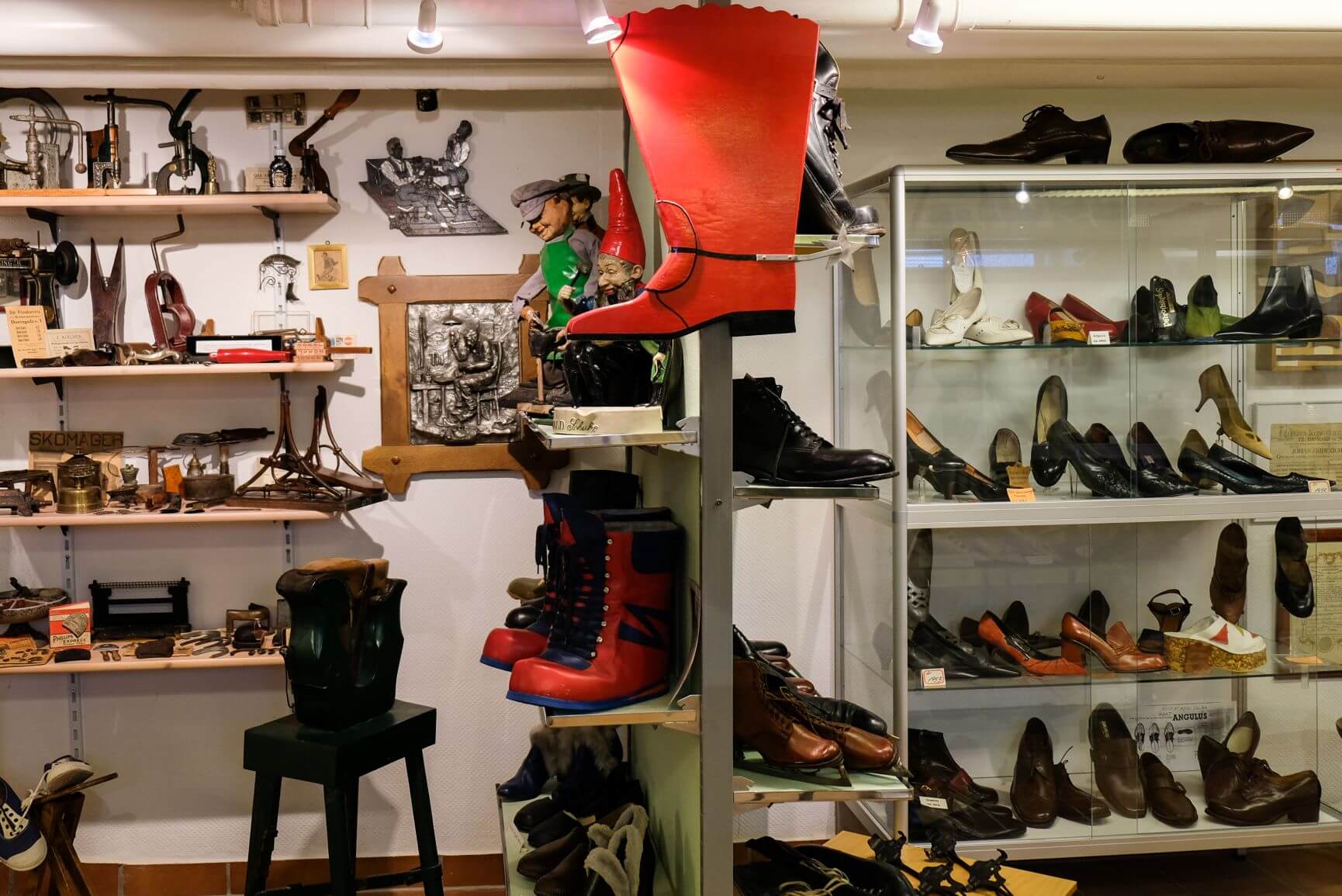 afdeling med træskoens historie, et skomager værksted fra ca. 1890, livet på en dansk skofabrik i 1950 til