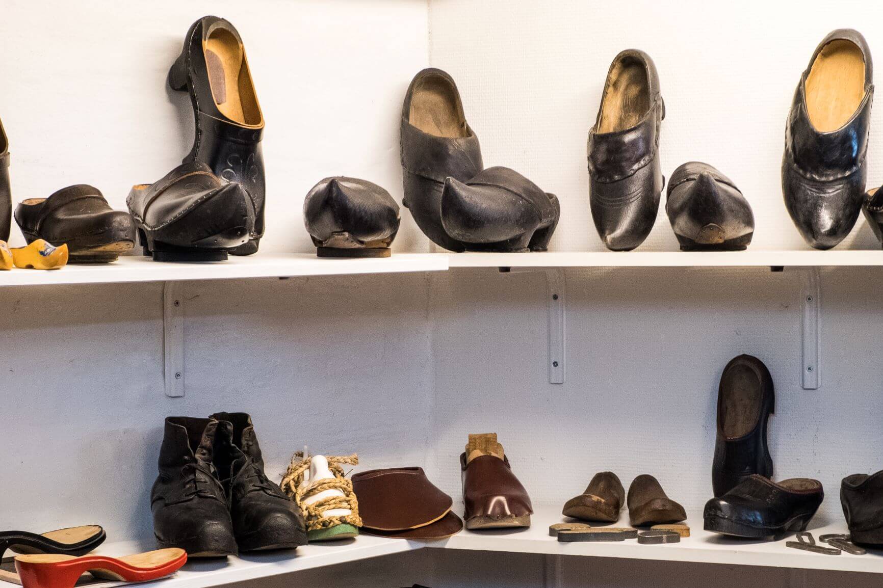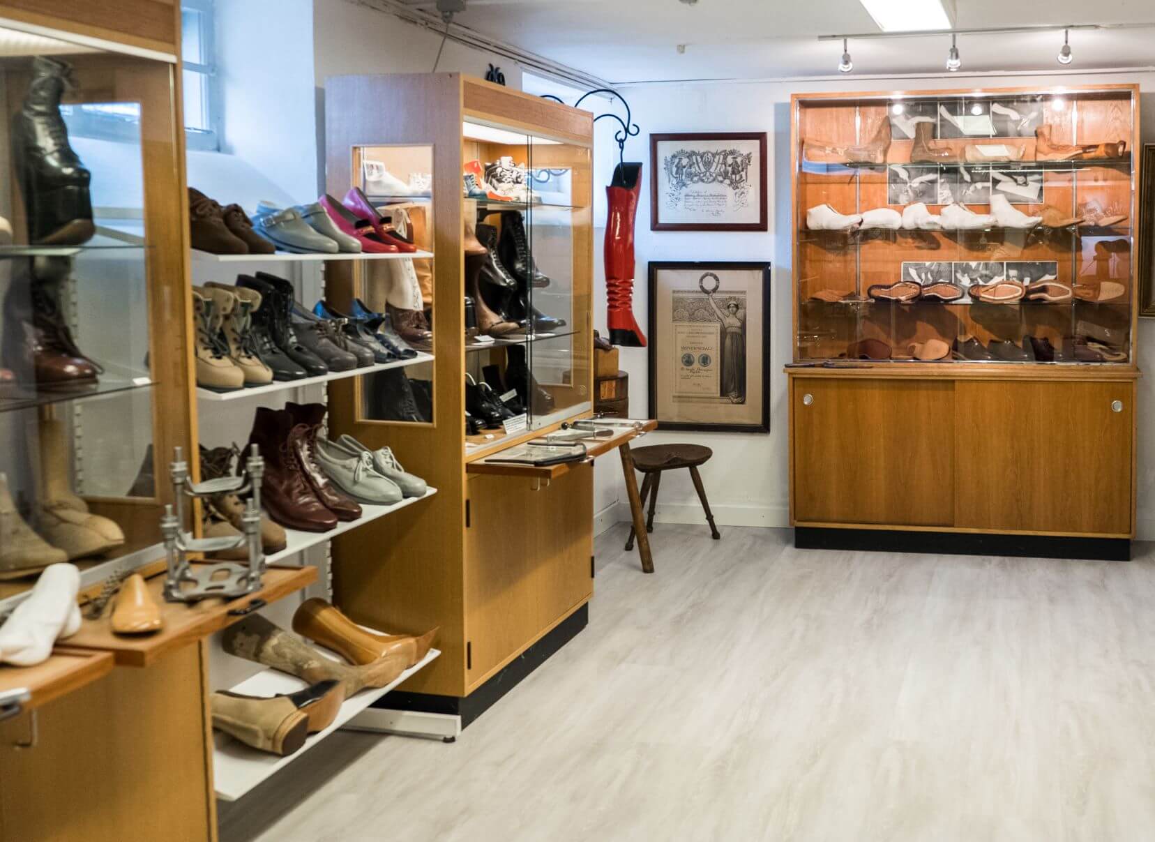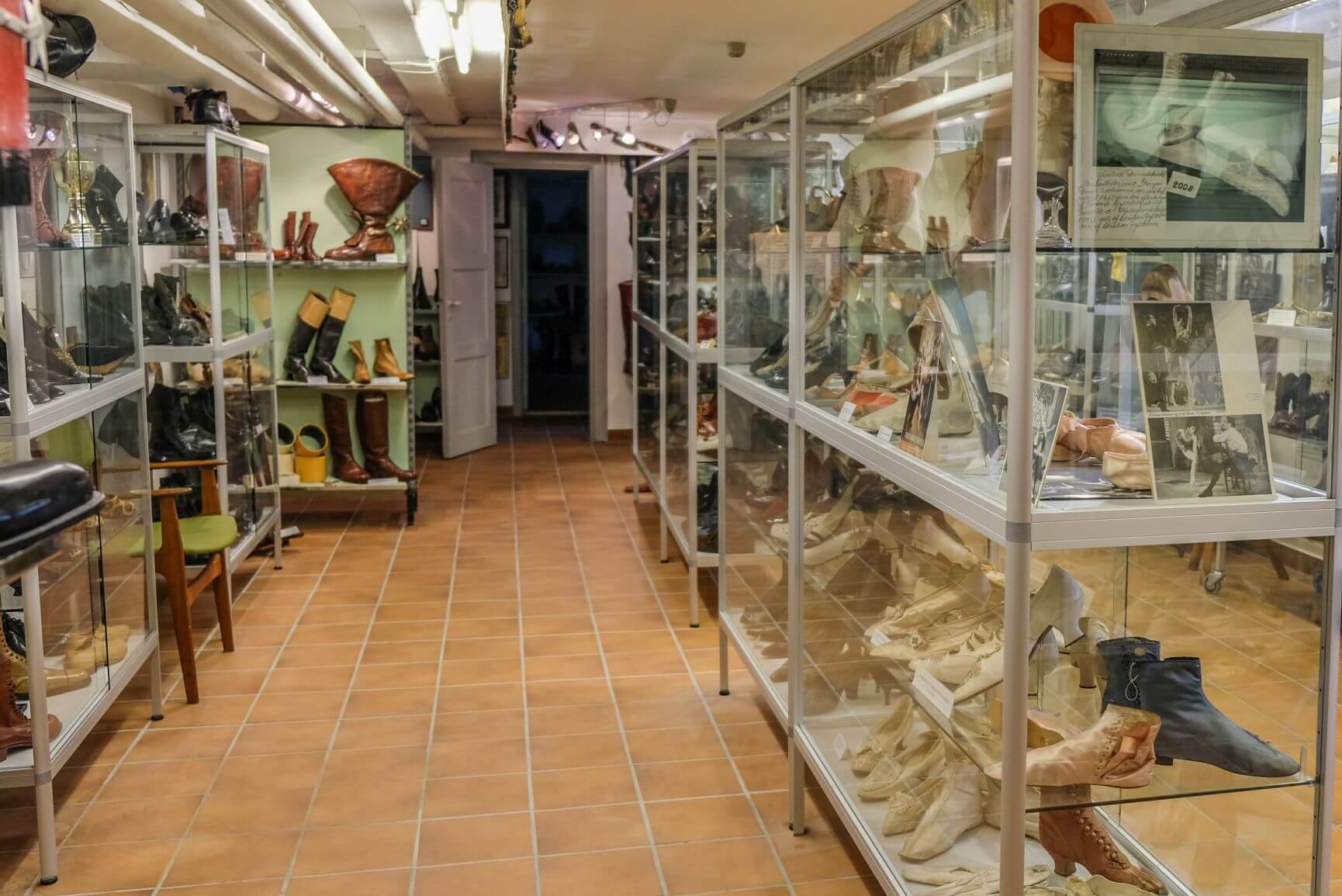 Samlingen omfatter afdeling med ortopædiske sko, historiske sko, skoværksted fra c. 1890, træsko gennem tiden, rundtur på en københavnsk skofabrik fra 1950 til 1970 (vist ved plancher), kongelige sko, balletsko, Bamses støvler, sko efter afdøde personer Niels Bohr, Mærsk Ma` Kenny Møller, Lauritz Melchior, mf. Udstillings sko fra verdensudstillingen 1889, svendeprøver, og i det hele taget sko, værktøj og maskiner gennem tiden.